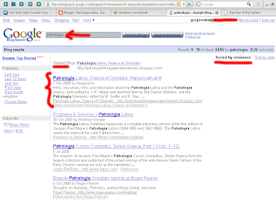 Reviewing the stats from this blog, i go to the Google Blog Search service, and type ‘Patrologia’. For my surprise, this was the result: