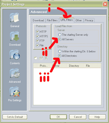 Then, go to the ‘URL Filters’ tab, and verify the options ‘All the servers’, and ‘all directories’…
