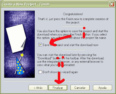 indicate tho the wizard to save the project, and click the ‘finish’ option.